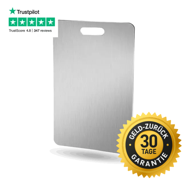 Kein Problem. Es gibt eine 30-Tage-Geld-zurück-Garantie. Wenn es nicht das beste Schneidebrett ist, das du je benutzt hast, kannst du es einfach zurückschicken – ganz ohne Diskussion.„Früher hatte ich immer Angst vor Bakterien, wenn ich rohes Hähnchen geschnitten habe. Katori hat mir endlich ein gutes Gefühl gegeben. Es lässt sich superleicht reinigen und riecht nach nichts – selbst nach Fisch!“