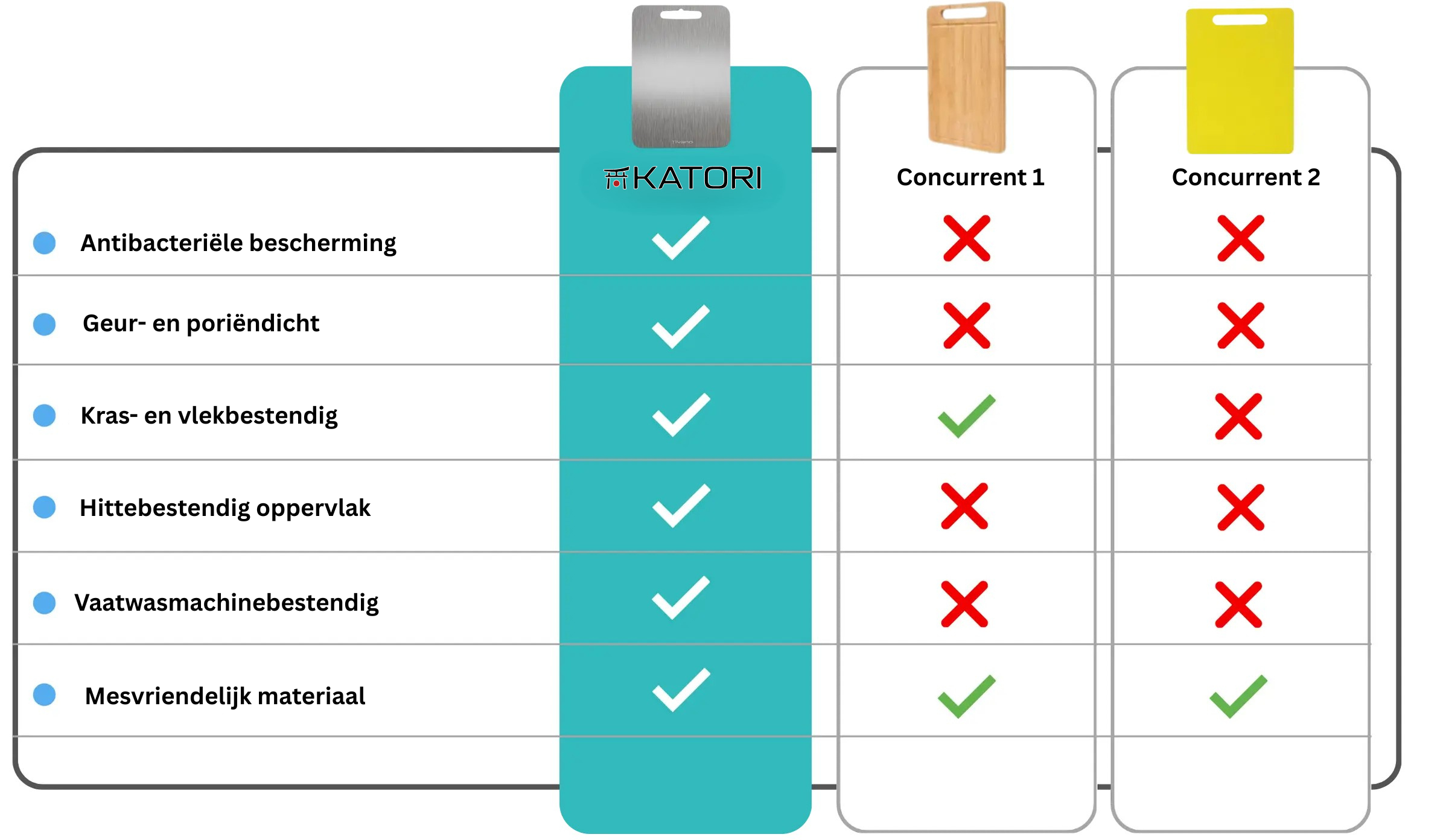 “Vroeger voelde het raar om dezelfde plank voor vlees en groenten te gebruiken. Met Katori hoef ik me daar geen zorgen meer over te maken – het neemt niets op en blijft schoon. Echt een upgrade!”